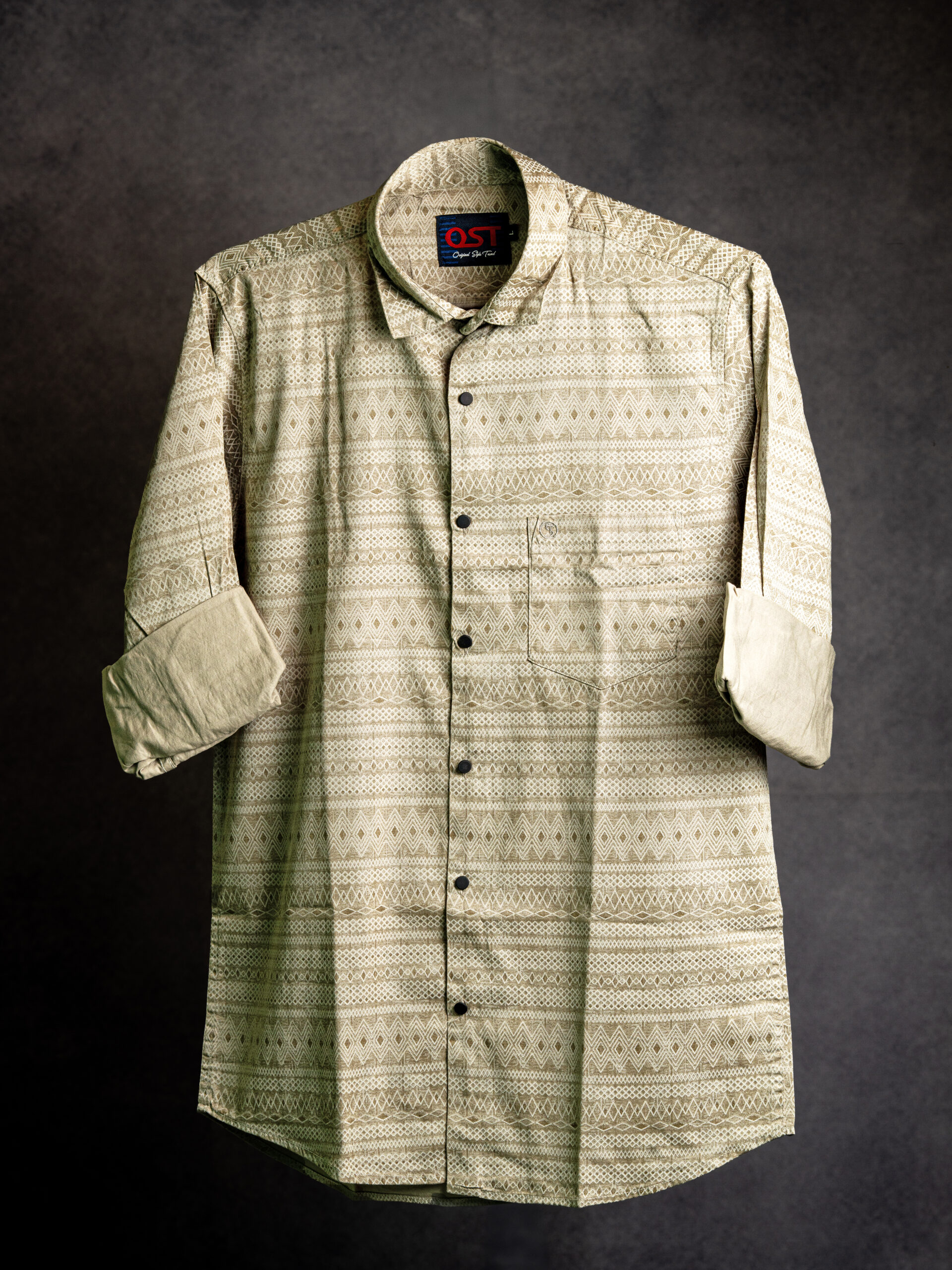 Upgrade your casual wardrobe with this elegant beige printed shirt designed for modern everyday wear. Crafted from soft, breathable cotton fabric, this shirt features a refined geometric pattern that adds depth and character without being overpowering.