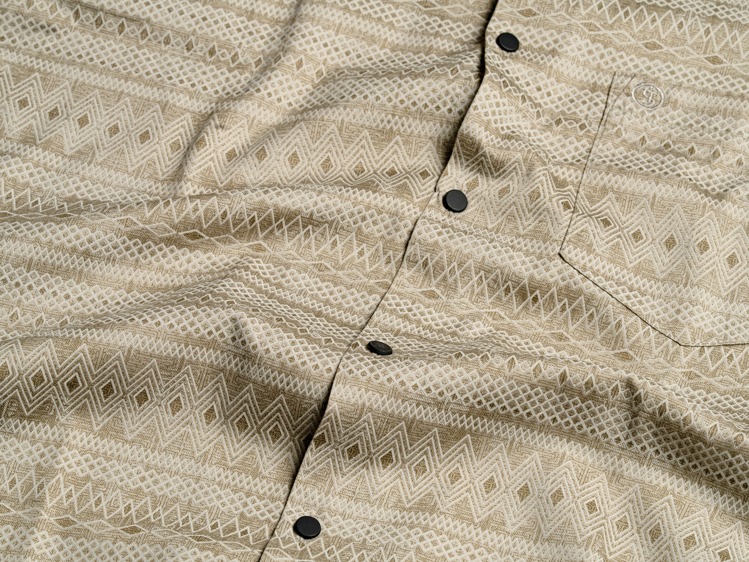 Stylish beige casual shirt featuring subtle geometric prints, crafted from breathable cotton for all-day comfort and effortless style.