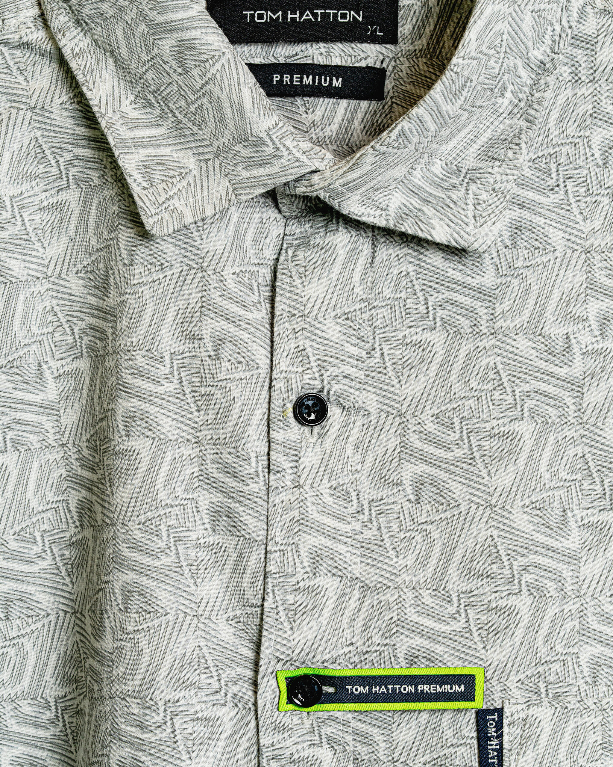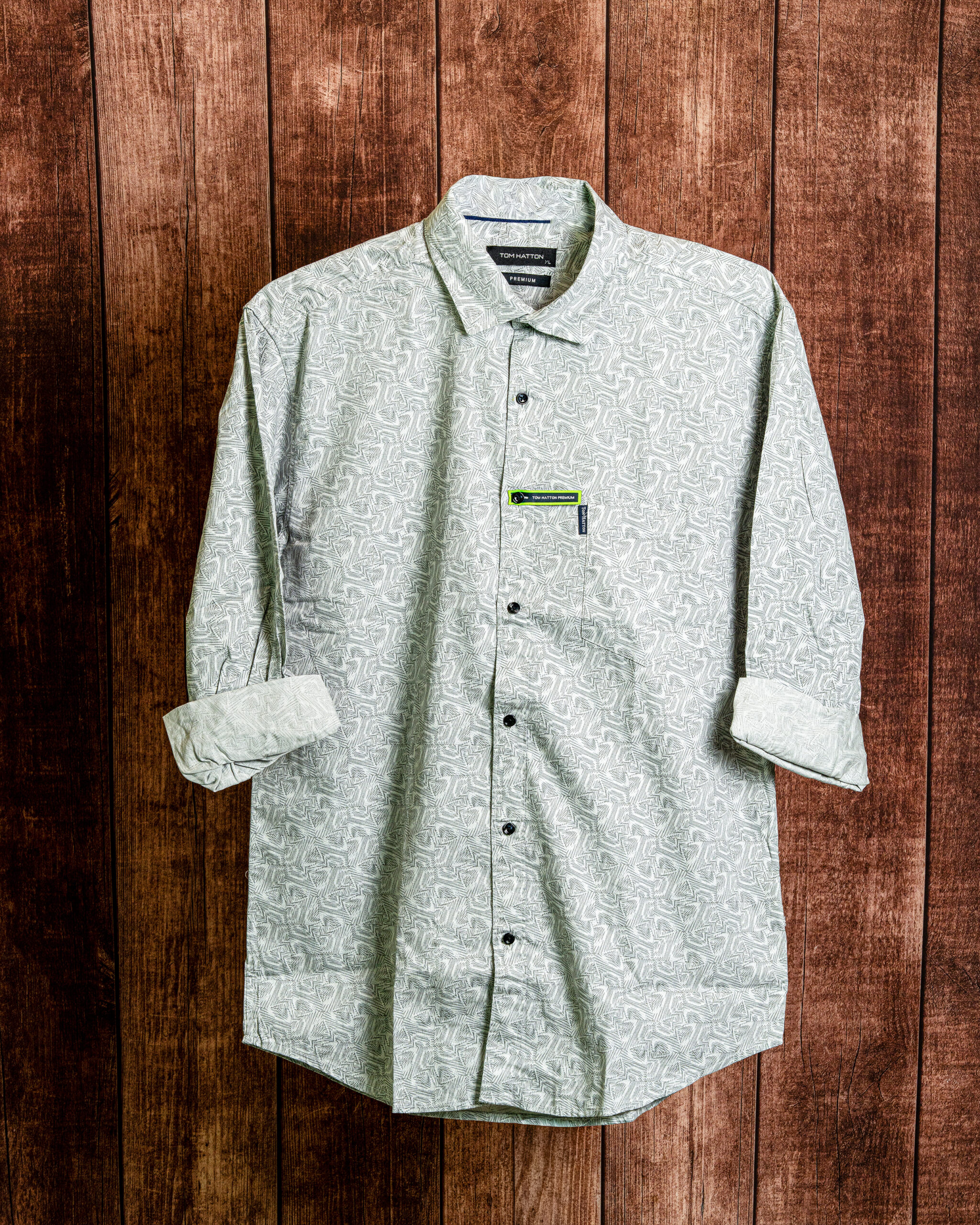 Premium sage grey cotton shirt featuring a modern geometric micro-print, designed for smart casual styling with all-day comfort.