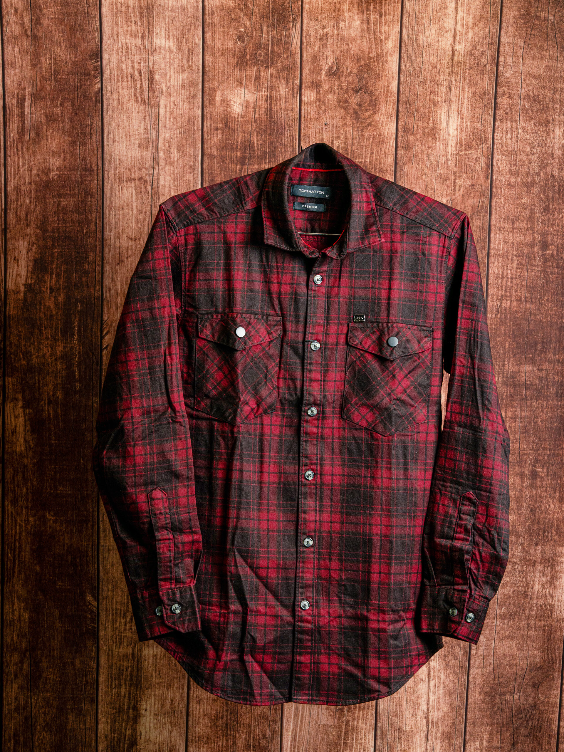 Built for bold everyday style, the Storm Rider Graphic Red Plaid Shirt combines classic check pattern with a statement motorcycle graphic on the back. Designed in a rich red and black plaid, this shirt delivers a rugged yet modern look perfect for casual wear, layering, and street styling. Crafted from soft brushed cotton blend fabric, it offers comfort, durability, and all-day wearability. Dual chest flap pockets and reinforced stitching add functional detail and structure.